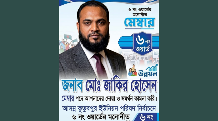 আসন্ন কুতুবপুর ইউনিয়ন পরিষদ নির্বাচনে মেম্বার পদে মোঃ জাকির হোসেনকে দেখতে চান এলাকাবাসী। কুতুবপুর ইউনিয়ন ৬নং ওয়ার্ড বাসীর অভিমত, আগামী নির্বাচনে তারা এমন প্রার্থীকেই তাদের সেবক হিসেবে বেছে নিবেন এবং