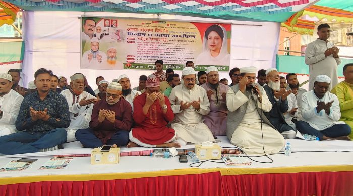 বিএনপির চেয়ারপার্সন, দেশনেত্রী বেগম খালেদা জিয়ার শারীরিক সুস্থতা ও দীর্ঘায়ু কামনায় কুতুবপুর ইউনিয়ন বিএনপি ও অঙ্গসংগঠনের উদ্যোগে দোয়া ও মিলাদ মাহফিল অনুষ্ঠিত হয়েছে। বৃহস্পতিবার ১১ ডিসেম্বর নারায়ণগঞ্জ সদর উপজেলার কুতুবপুর