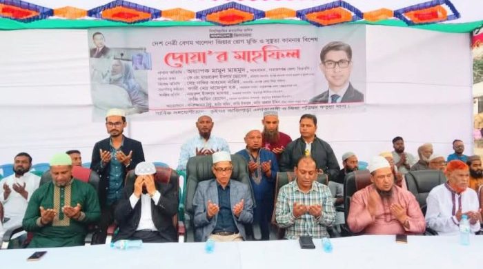 সাবেক প্রধানমন্ত্রী দেশনেত্রী বেগম খালেদা জিয়ার আশু রোগমুক্তি ও সুস্থতা কামনায় কাজী পাড়া এলাকা বাসী ও জিয়া পরিষদ ফতুল্লা থানা শাখার উদ্যোগে দোয়া মাহফিল অনুষ্ঠিত হয়েছে। সোমবার ১ ডিসেম্বর বাদ