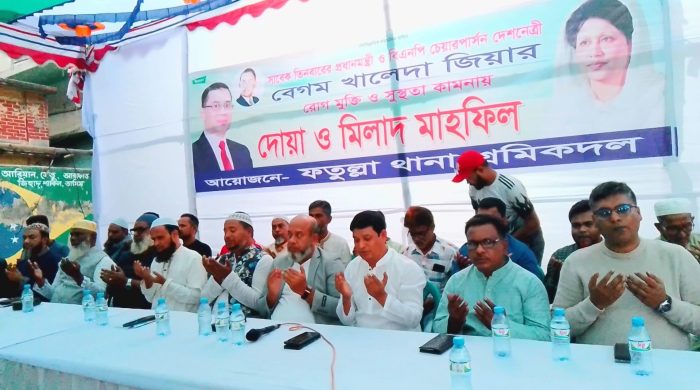 সাবেক প্রধানমন্ত্রী দেশনেত্রী বেগম খালেদা জিয়ার আশু রোগমুক্তি ও সুস্থতা কামনায় ফতুল্লা থানা শ্রমিক দলের উদ্যোগে দোয়া মাহফিল অনুষ্ঠিত। উক্ত অনুষ্ঠানে প্রধান অতিথি হিসেবে উপস্থিত ছিলেন ফতুল্লা থানা বিএনপির সিনিয়র